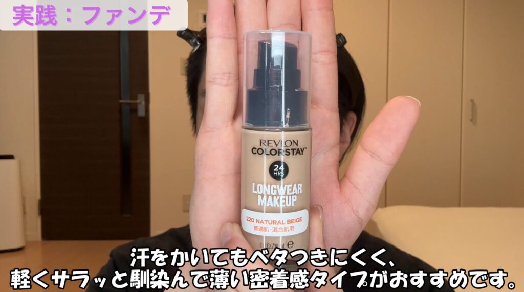 まず、皮脂が気になる人はレブロン カラーステイ ロングウェア メイクアップのように、汗をかいてもベタつきにくく、軽くサラッと馴染んで薄い密着感タイプがおすすめです。