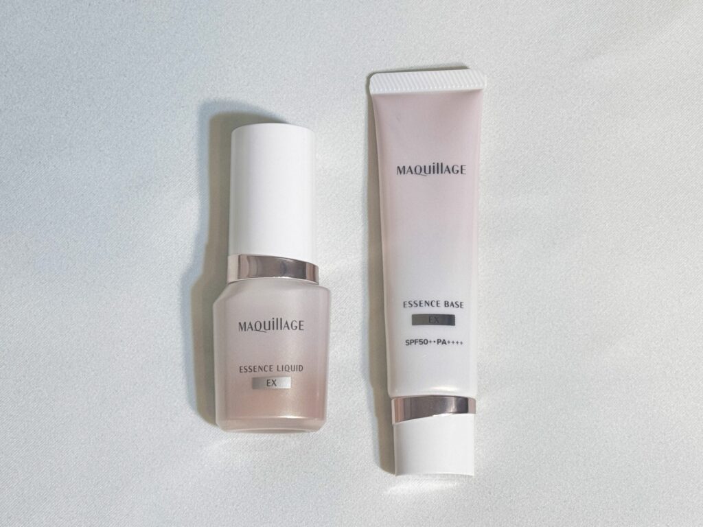 今回は、マキアージュの美容液下地「エッセンスベース EX」と、美容液ファンデ「エッセンスリキッド EX」をセットで使用した際の仕上がりや使用感をまとめました。それではどうぞ!