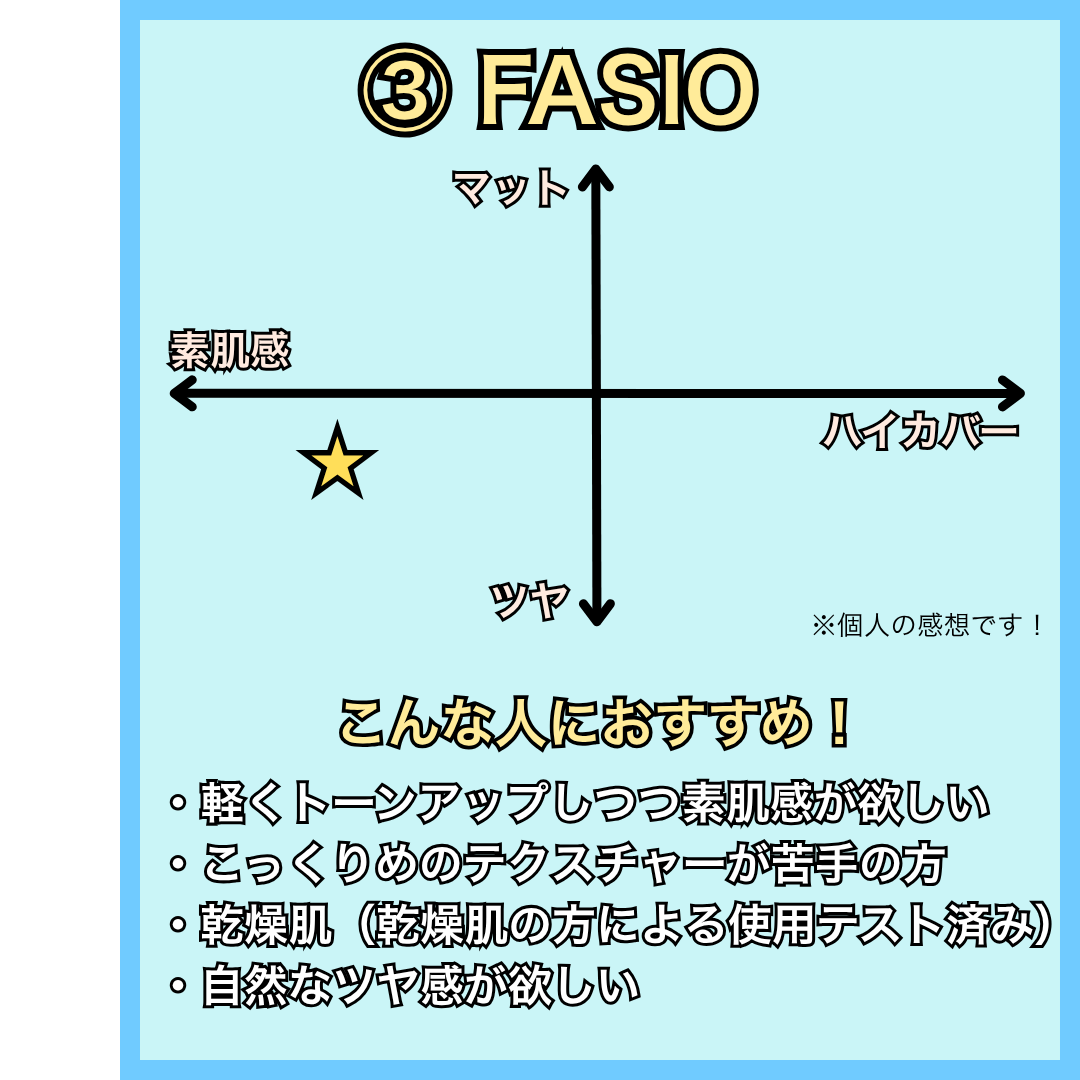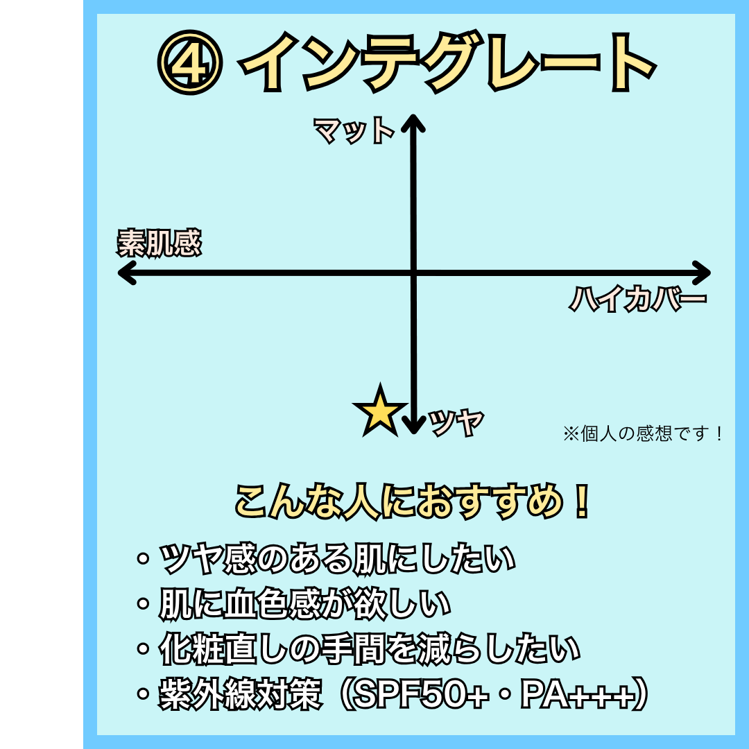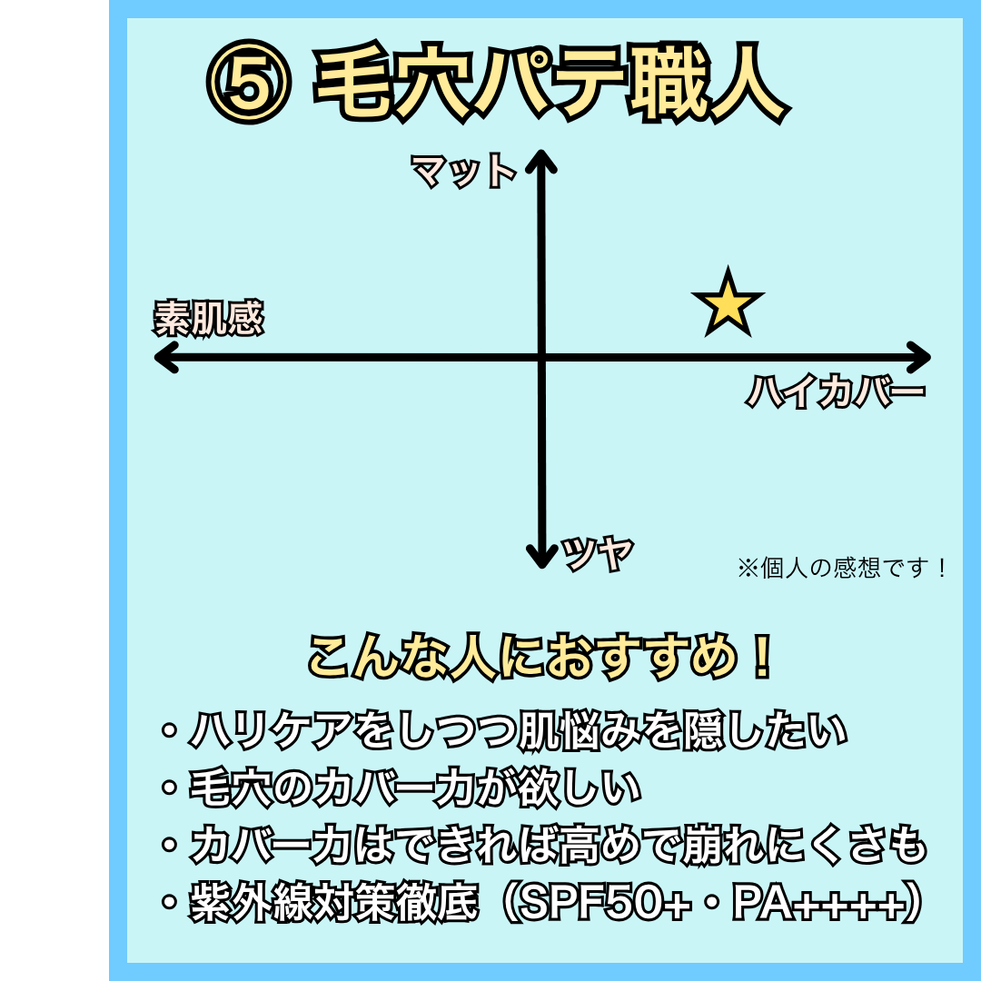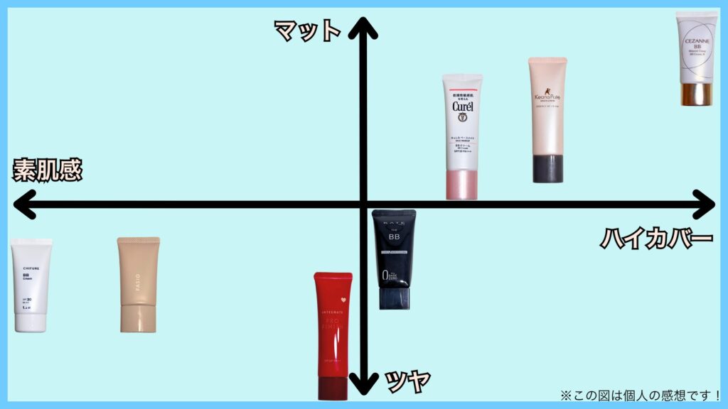 簡単に図にまとめるとこんな感じで、質感とカバー力で分けてみました。