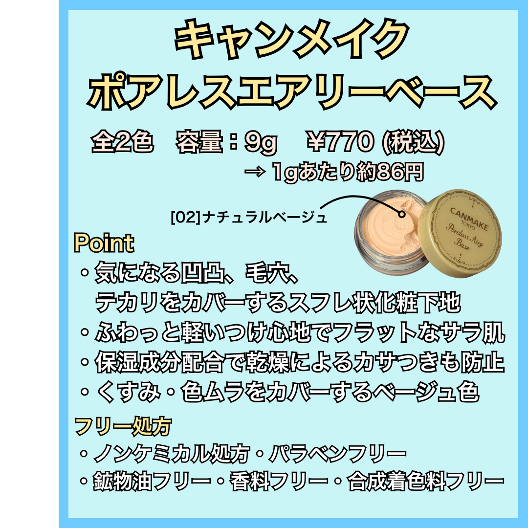 そして次は、キャンメイクのポアレスエアリーベース02の特徴です。