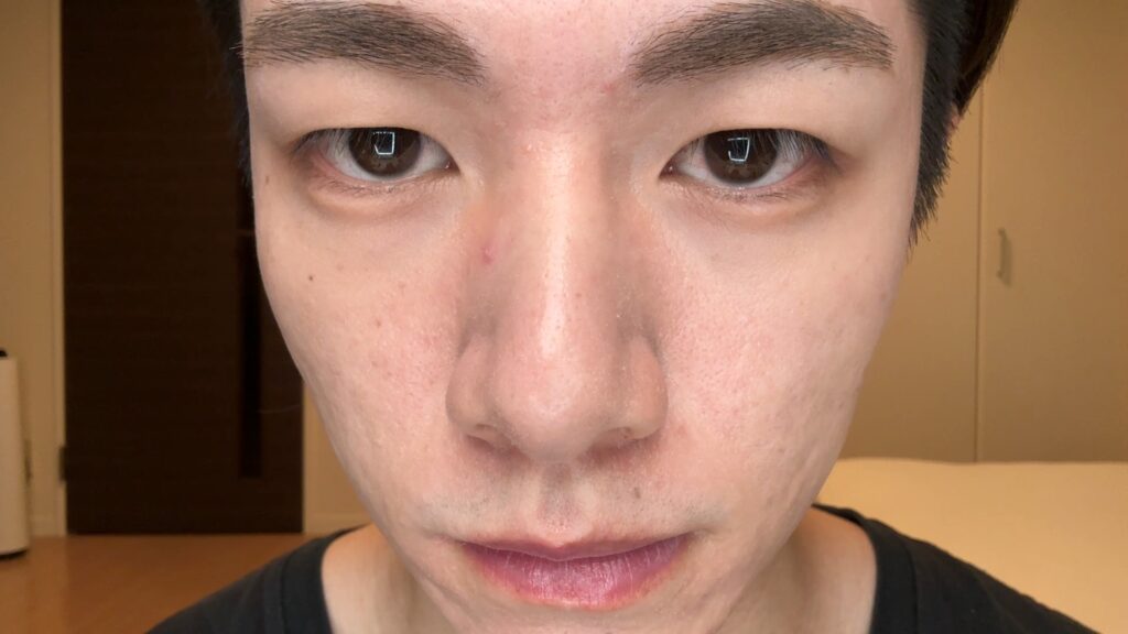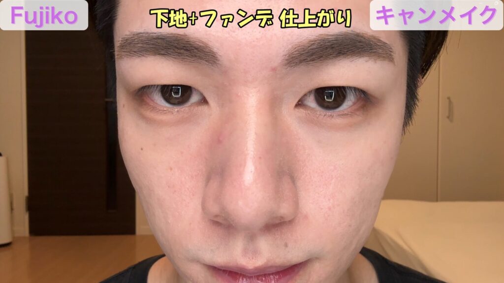 そして、こちらが薄付きのファンデーションを重ねた状態の仕上がりです。
